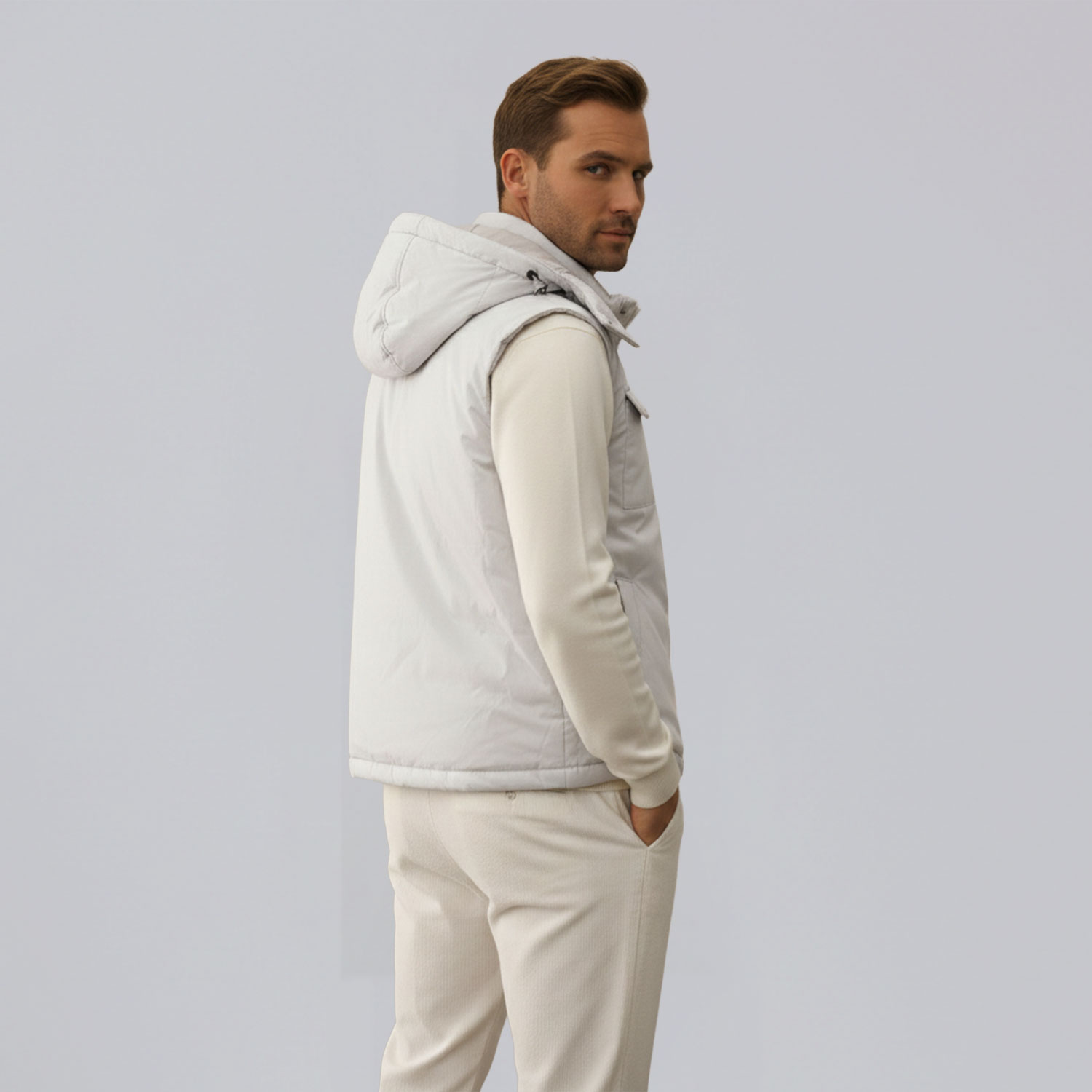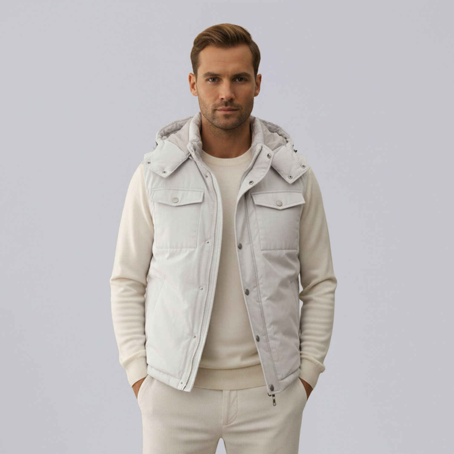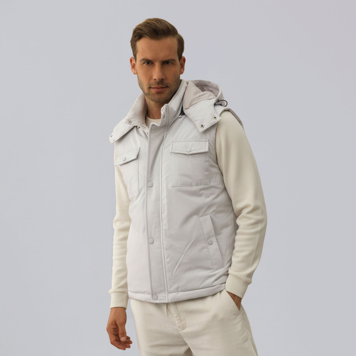 Description: Affrontez le froid avec style grâce à notre doudoune sans manches avec capuche démontable. Conçue pour un confort optimal, sa coupe confortable fit s’adapte parfaitement à votre silhouette, tout en offrant une grande liberté de mouvement. Les deux poches sur la poitrine ajoutent une touche de praticité, idéale pour garder vos essentiels à portée de main.